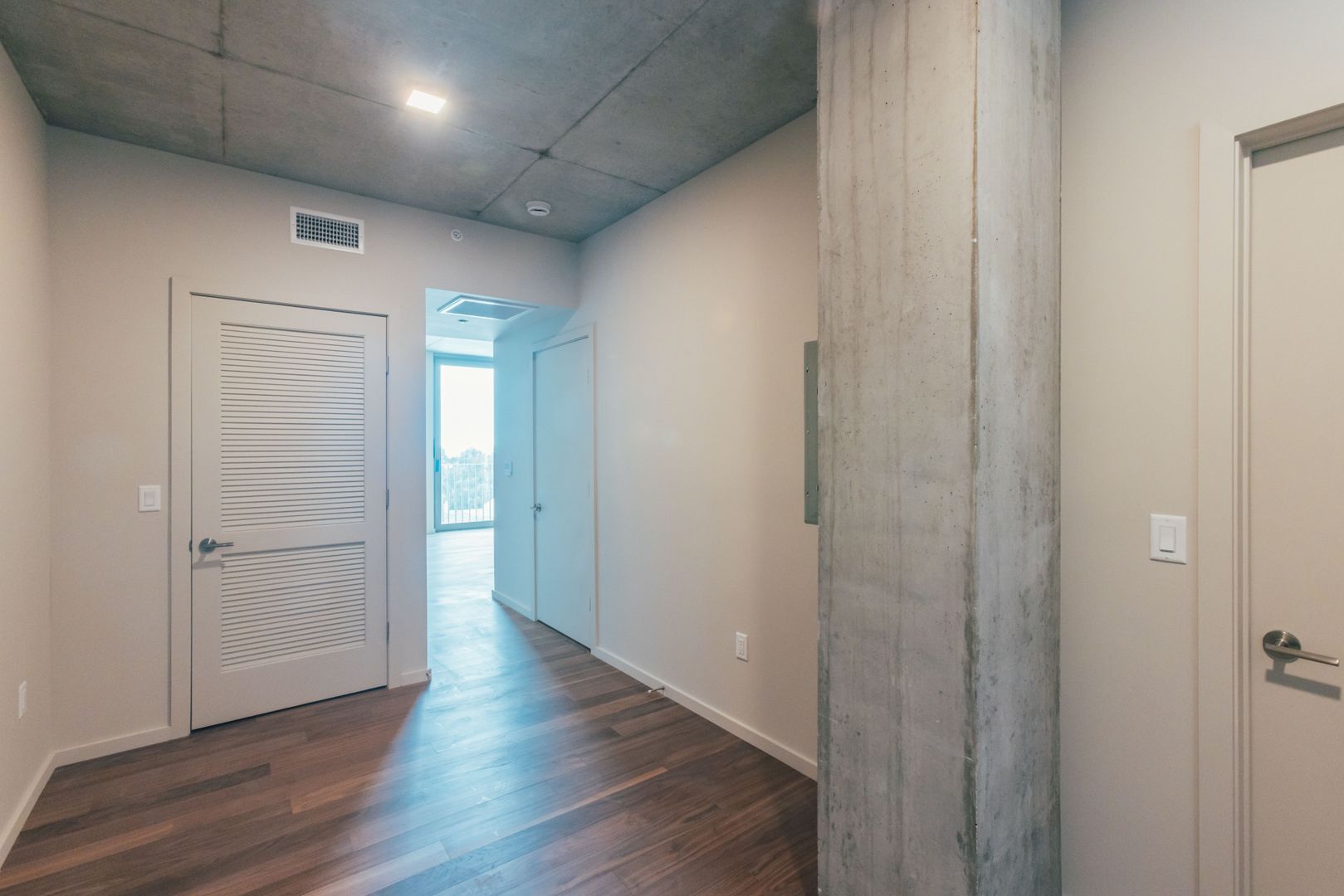 Designed by architect Jeff Svitak, Kaya features open-air walkways, illuminated glass-block corridors, and a lobby wrapped in Indonesian teak with curated art and custom furniture. Smart conveniences include community-wide WiFi, Latch keyless access, and water stations on every floor.