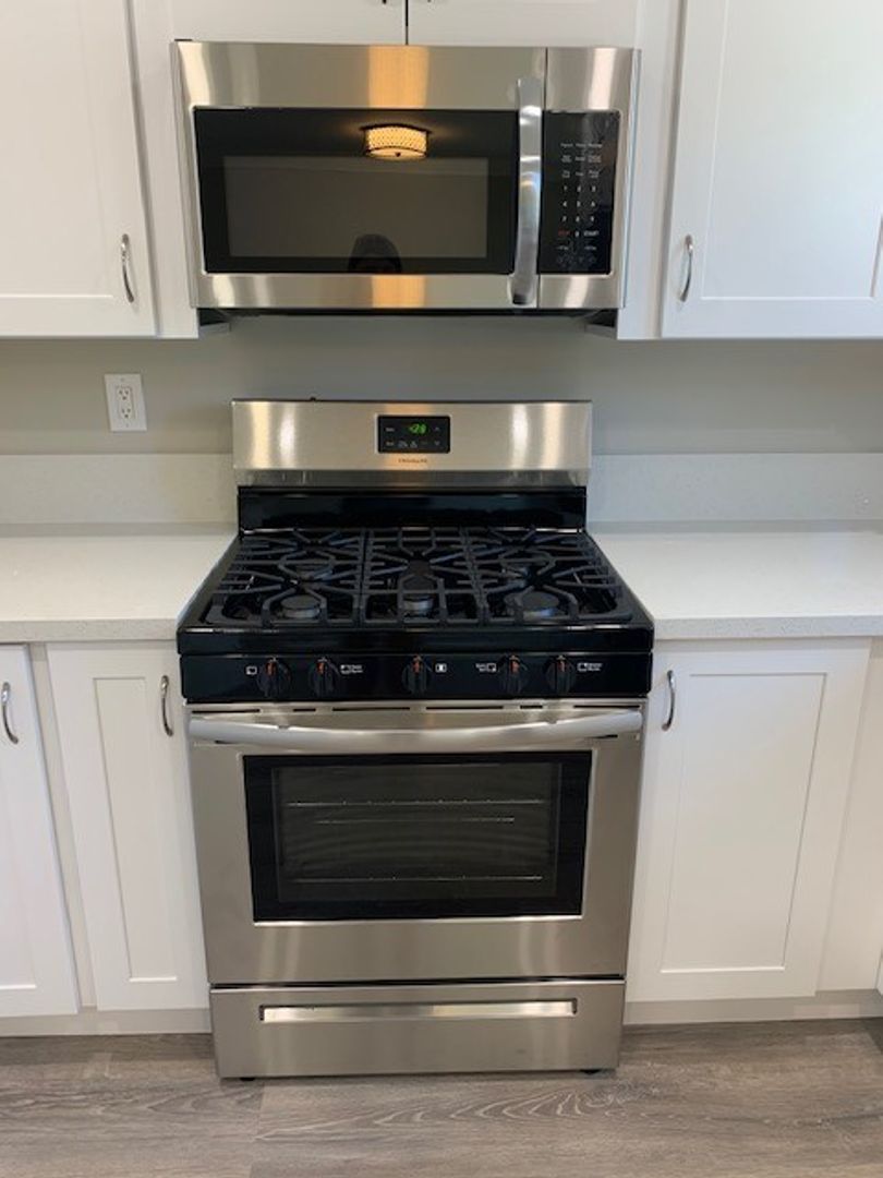 Upgraded Kitchen, with stainless steal appliances, shaker white cabinets, quartz countertops