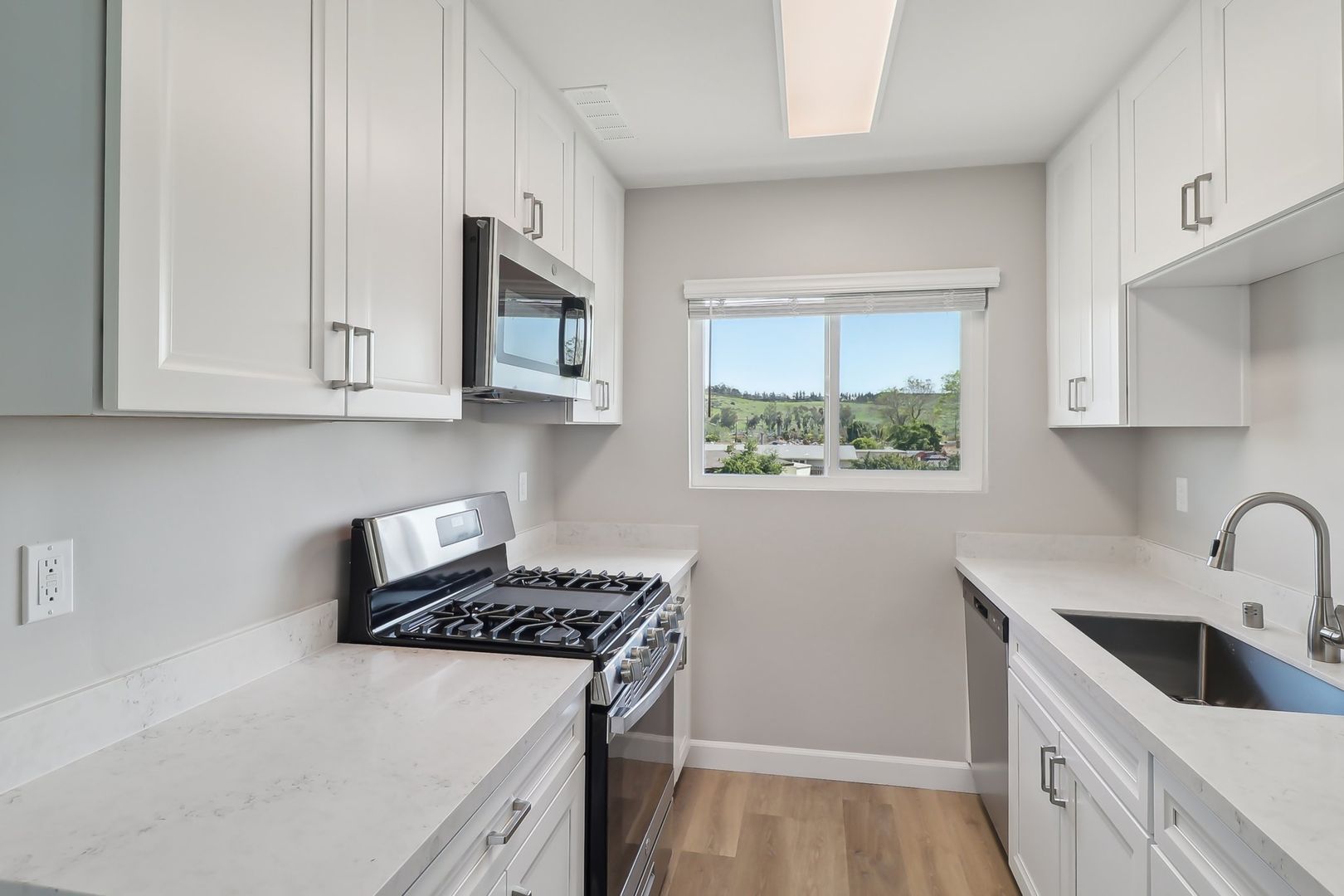 Welcome to The Quincy, located in the heart of Poway! Our renovated apartments feature modern interior finishes such as stainless-steel gas appliances, luxury plank flooring, tiled showers, quartz countertops, oversized mirror closets, and an open-concept floor plan. Apartment #19 is an upstairs south-facing unit with A/C to keep you cool, high-efficiency in-unit laundry, and one assigned parking space.